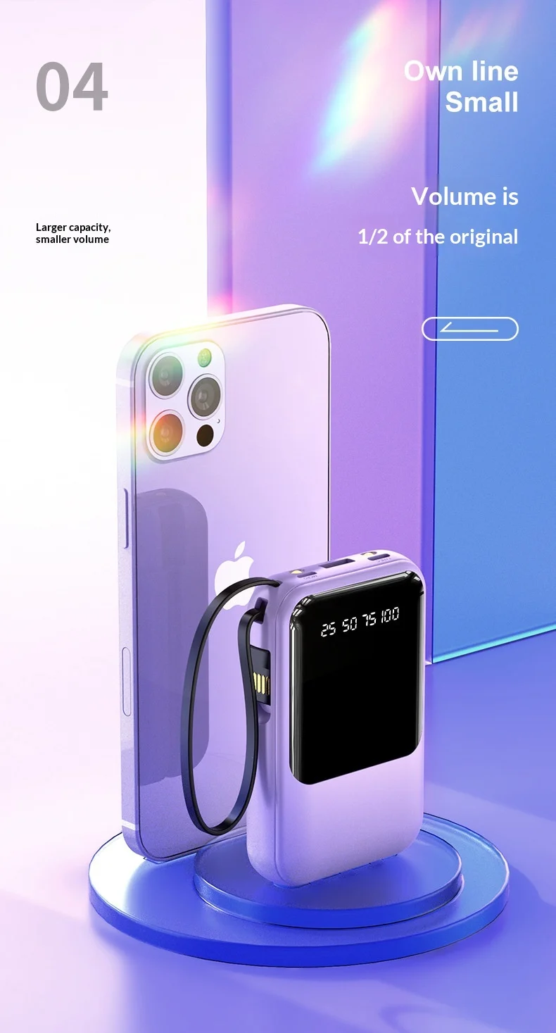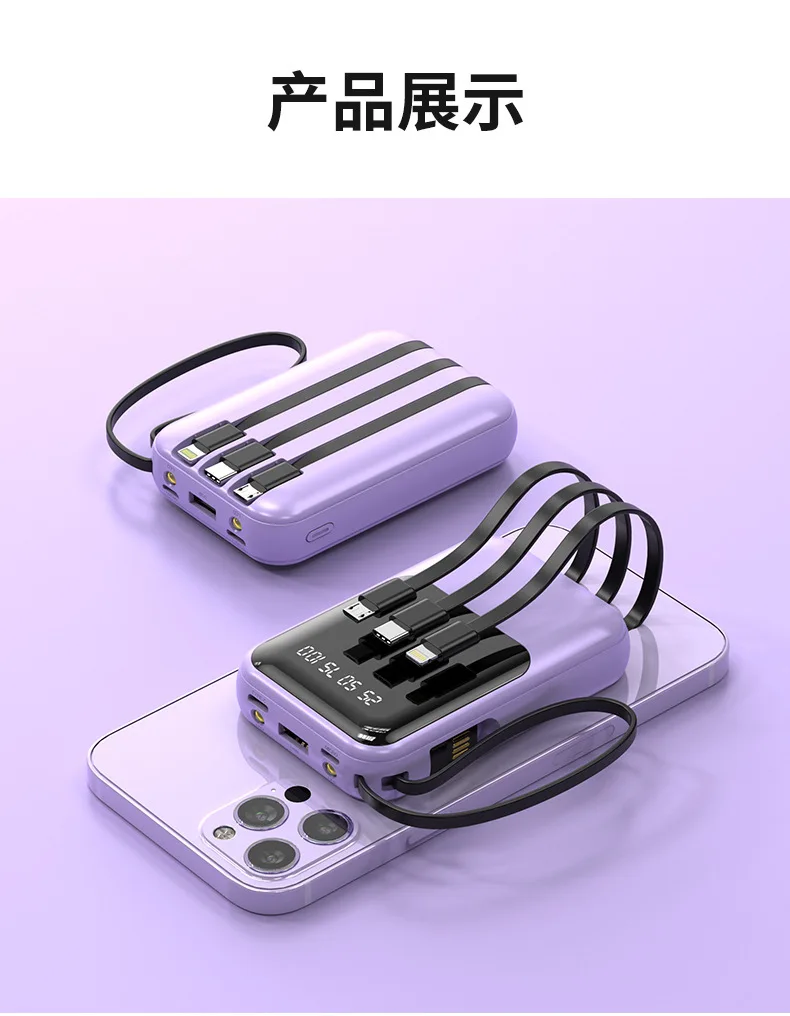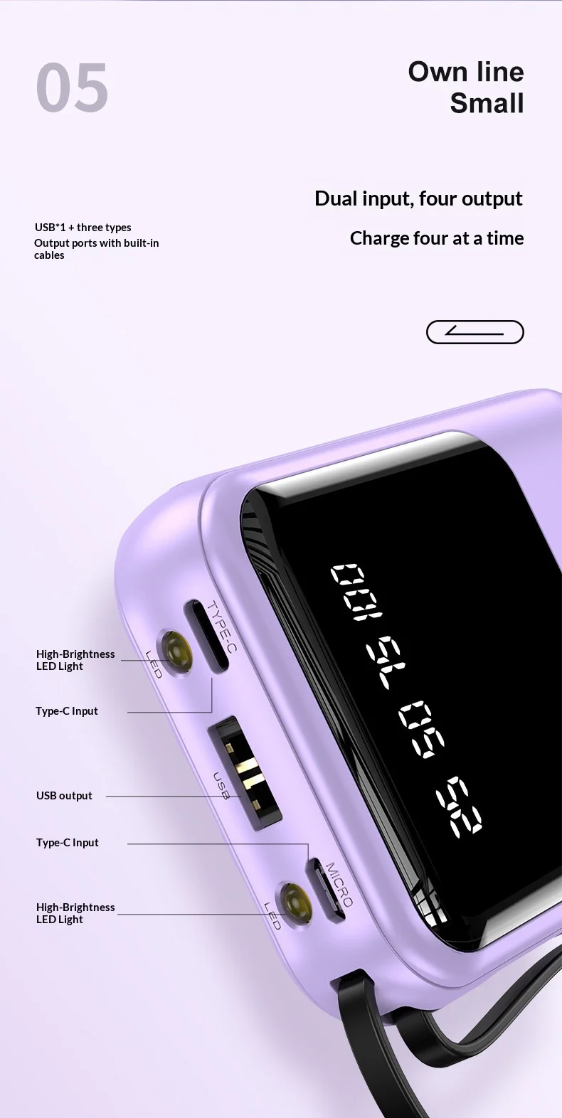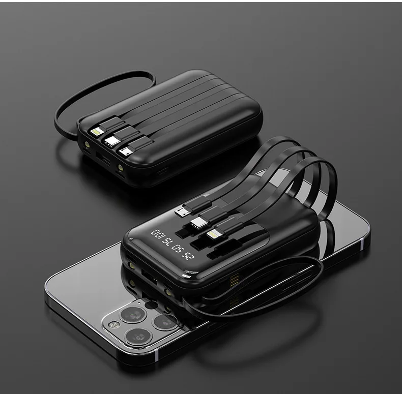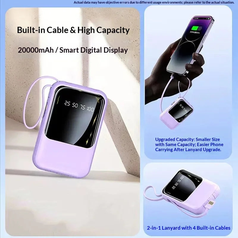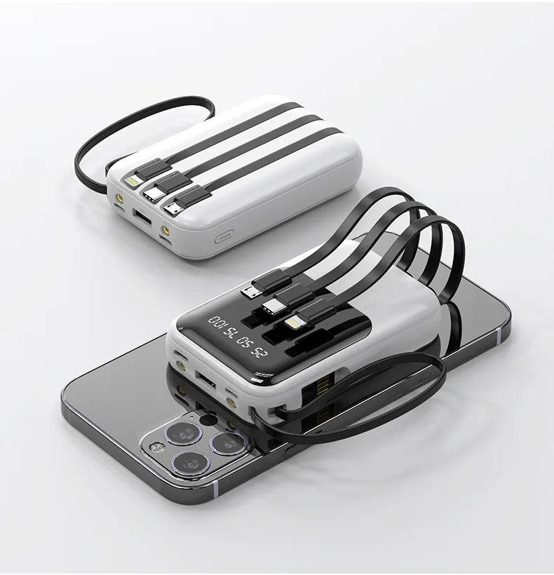 ミニ有線・デジタル表示付き 20000mAh大容量モバイルバッテリー(スマホ充電に便利)