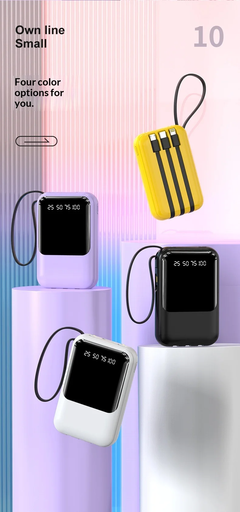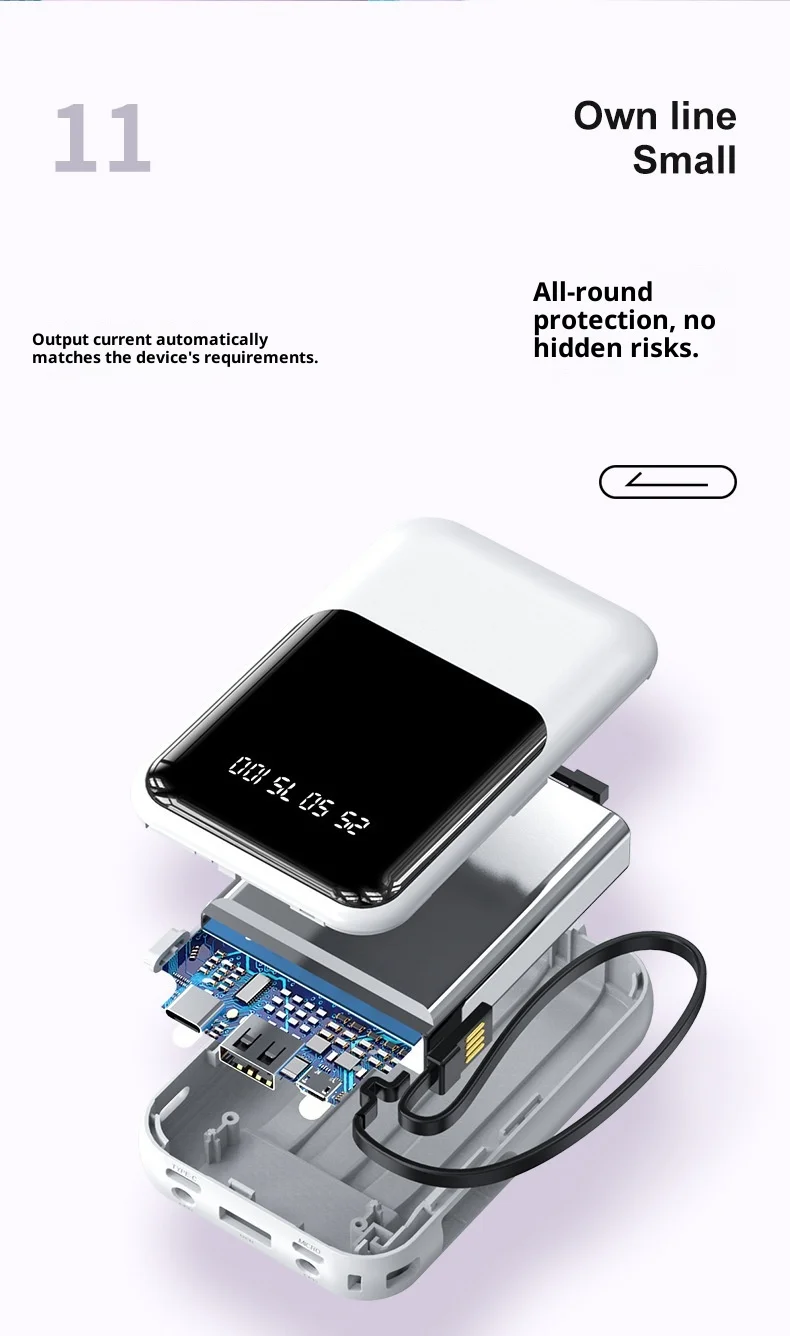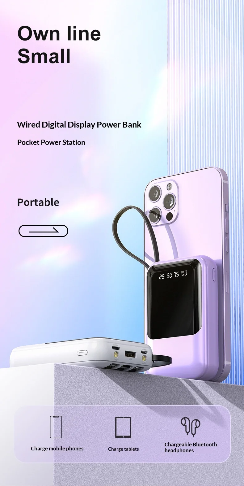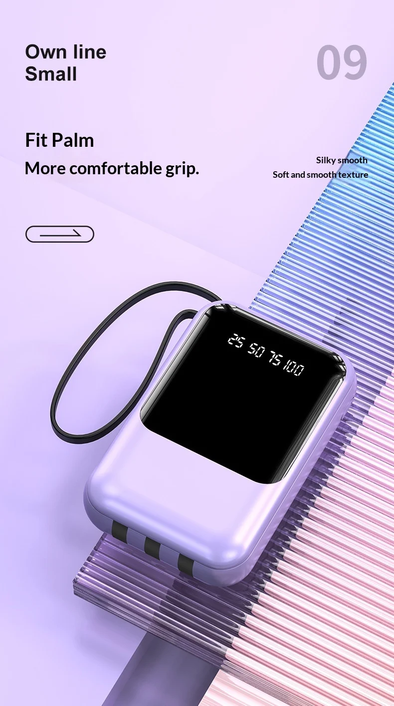 ミニ有線・デジタル表示付き 20000mAh大容量モバイルバッテリー(スマホ充電に便利)