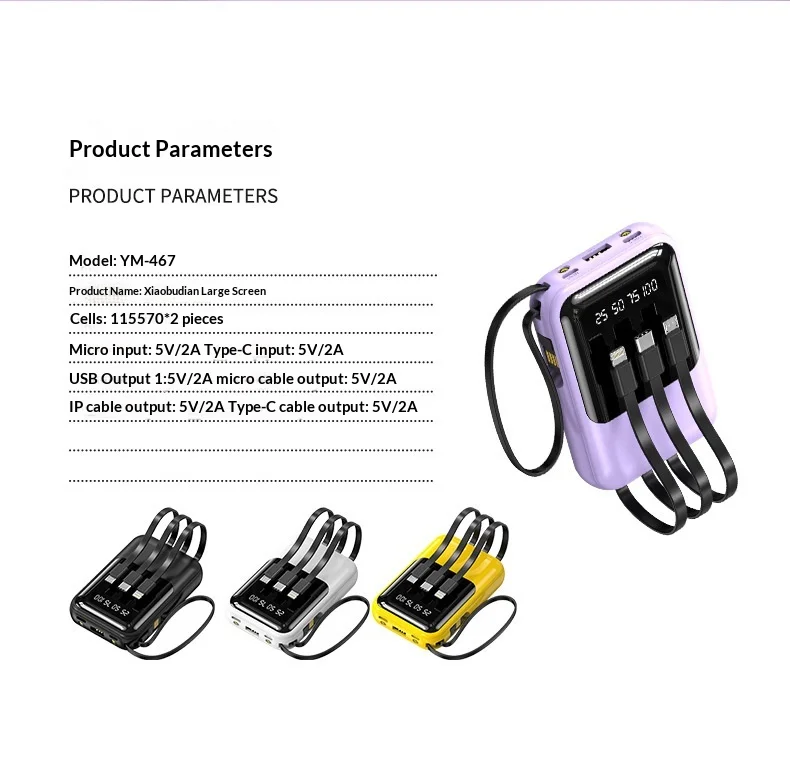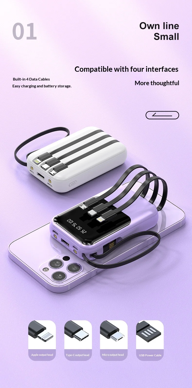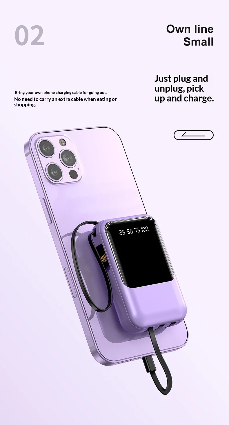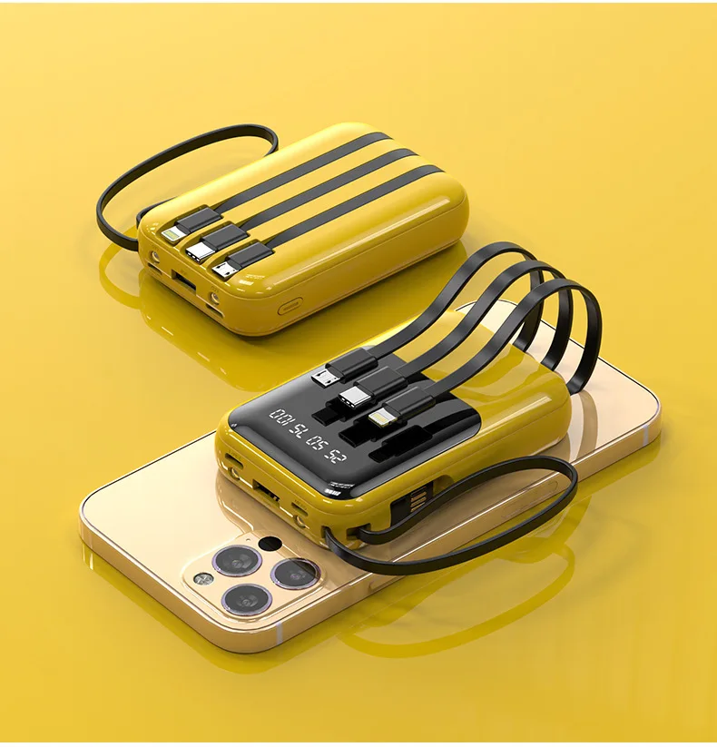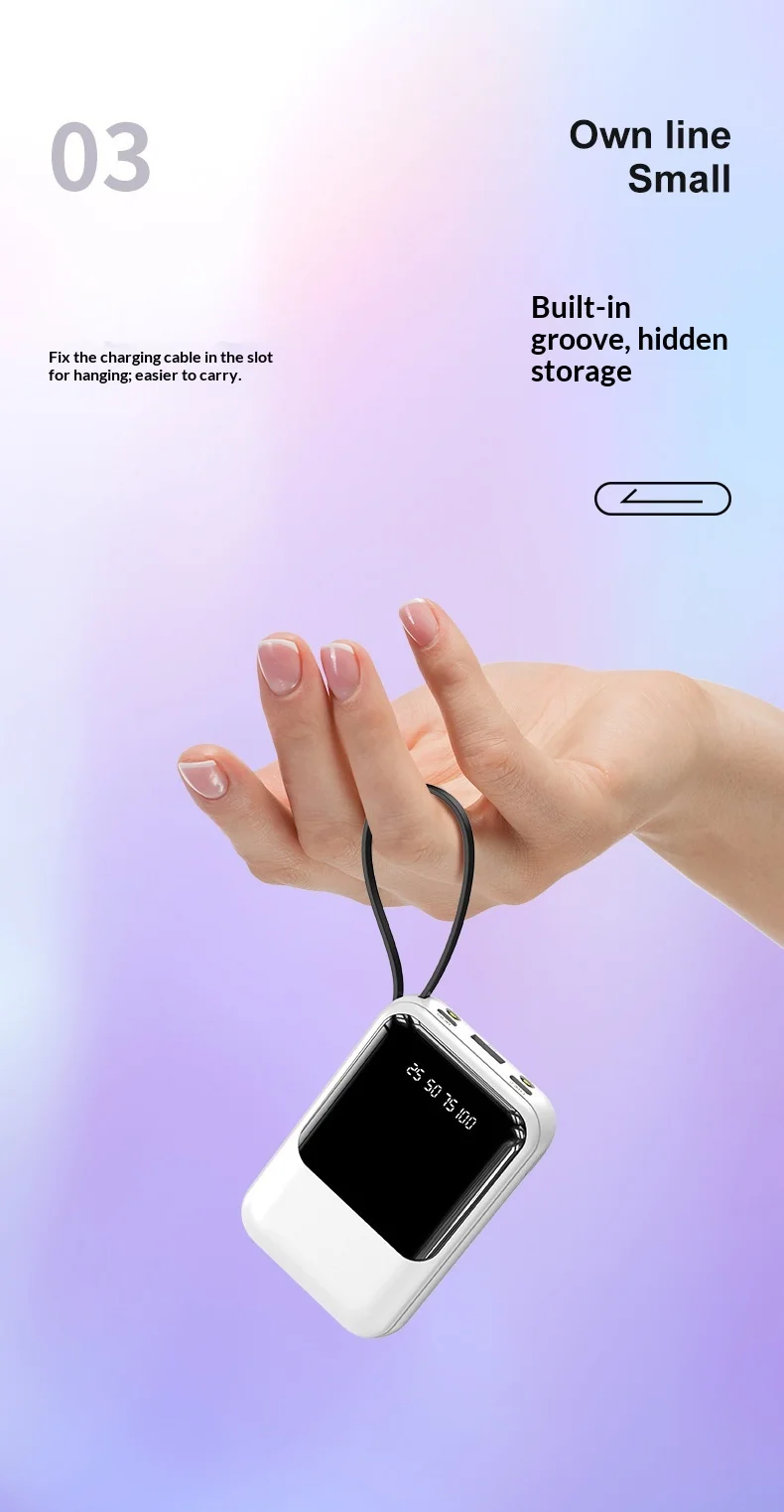 ミニ有線・デジタル表示付き 20000mAh大容量モバイルバッテリー(スマホ充電に便利)