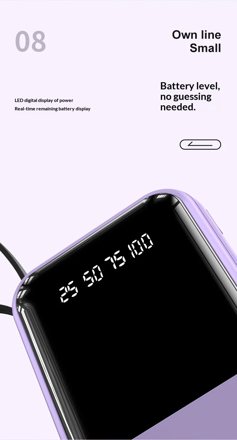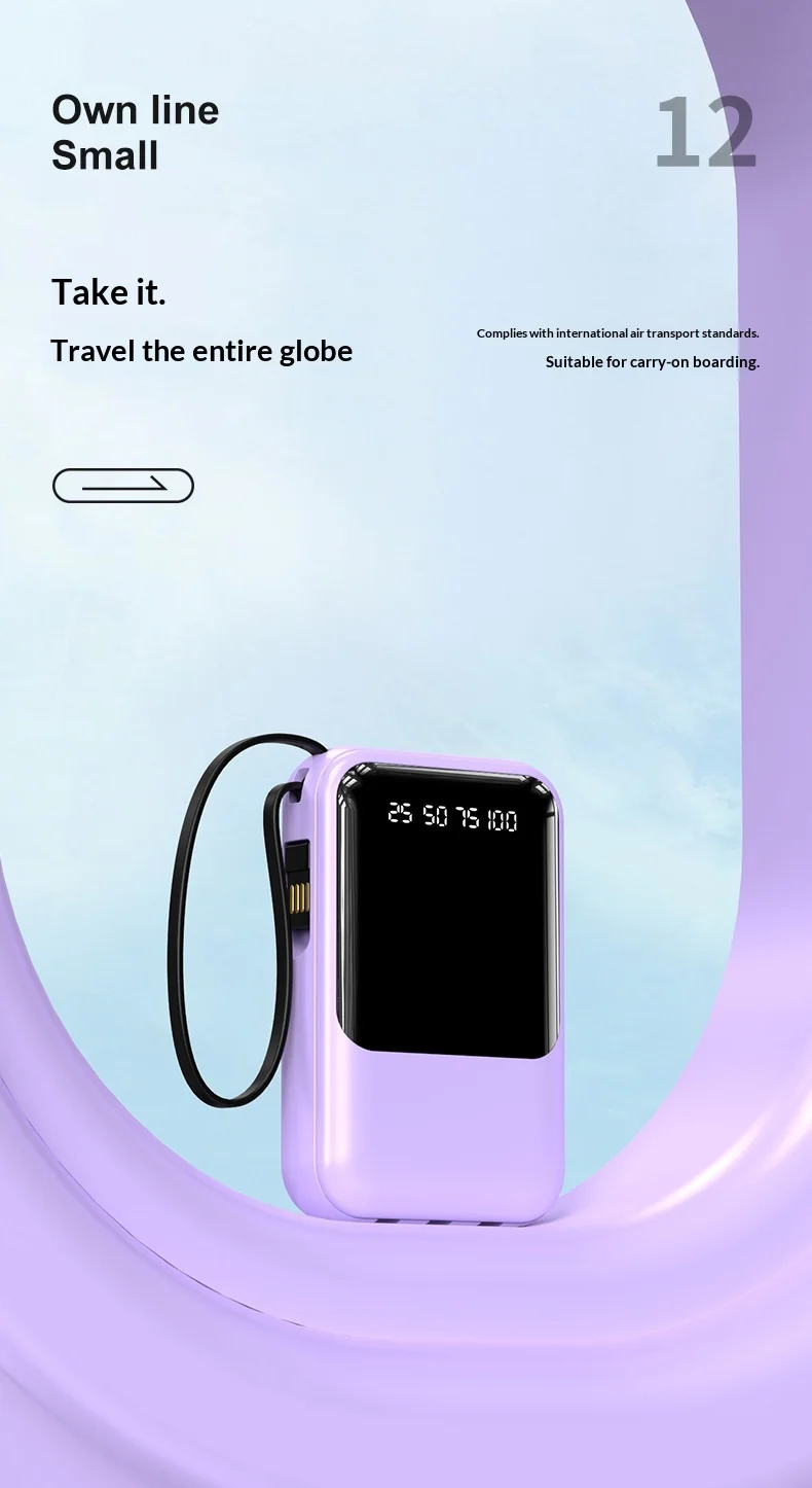 コンパクトながら20000mAhの大容量バッテリーを搭載した、スマートデジタル表示付きモバイルバッテリーです。