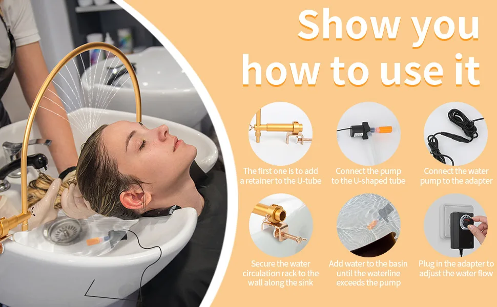 水循環ヘッドスパフレーム&ピローセット|180°角度調整可能・ウォーターポンプ付き・金属固定式|美容室用マッサージシャワー機器